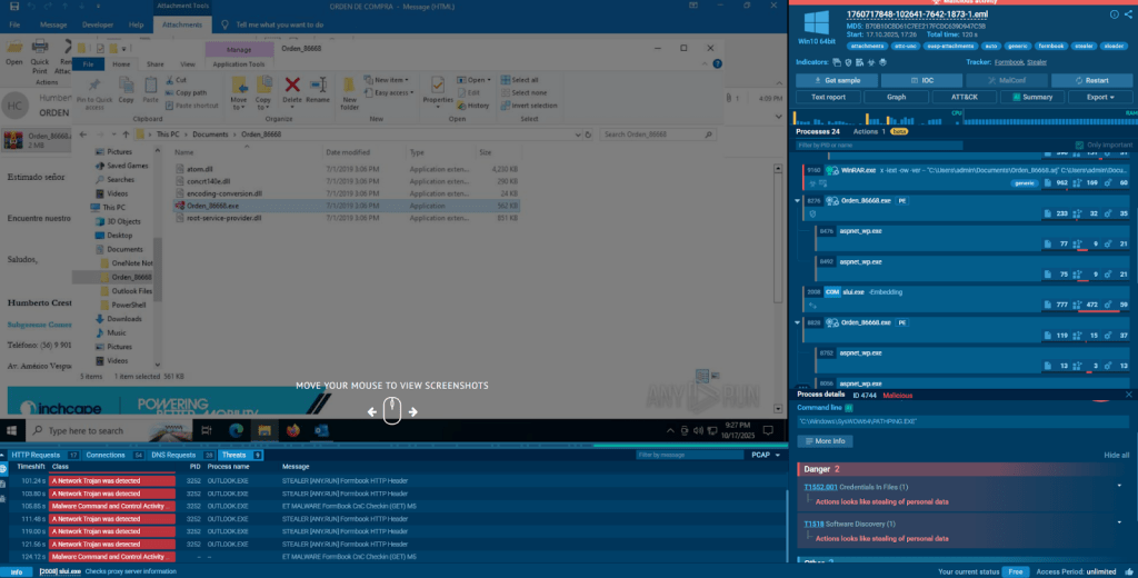 Figure 2. Activities taken by FormBook malware when detonated in a virtual machine.